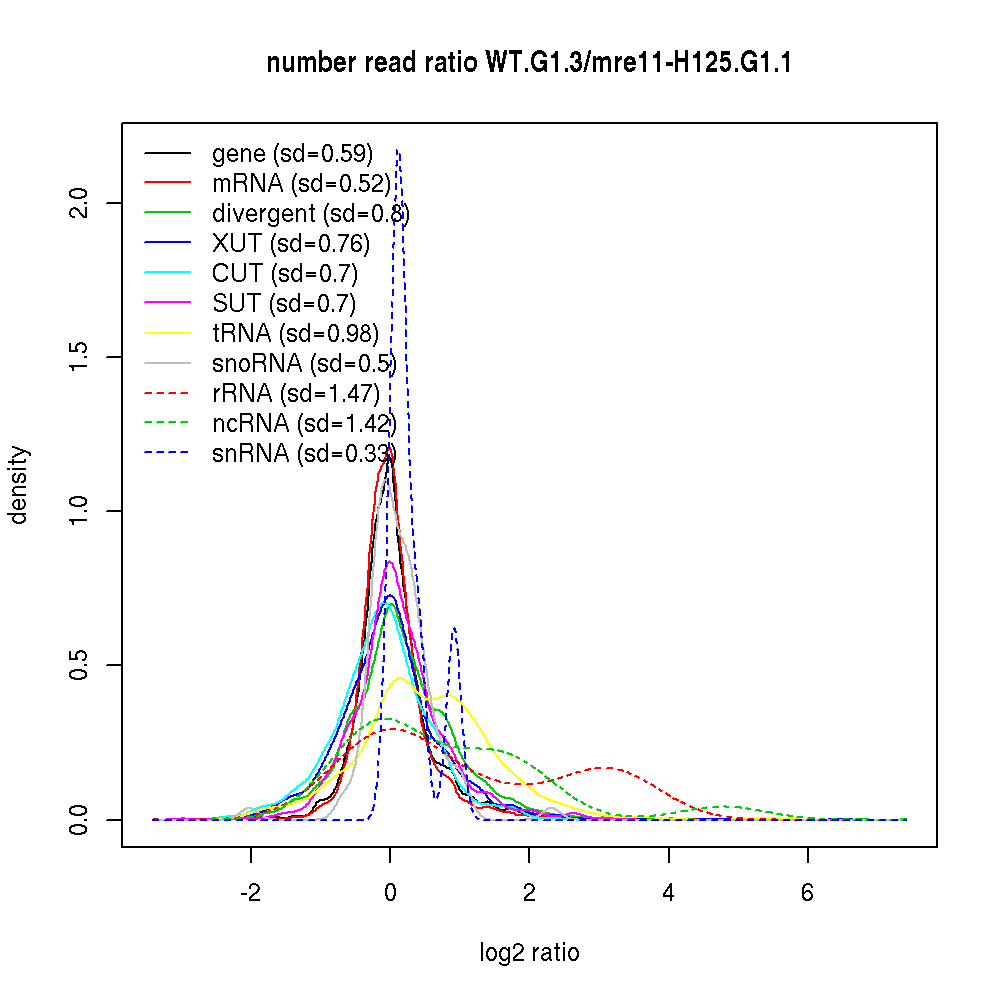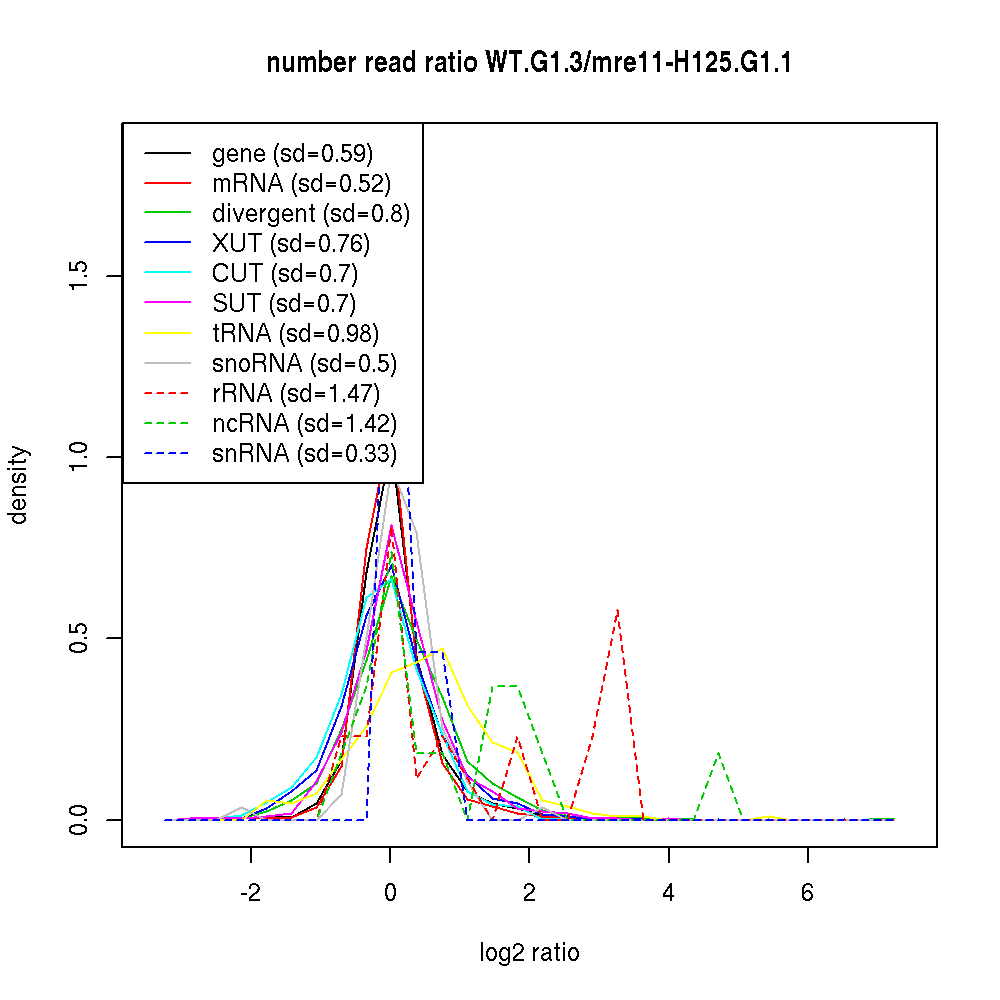 Density plot read ratio by type -