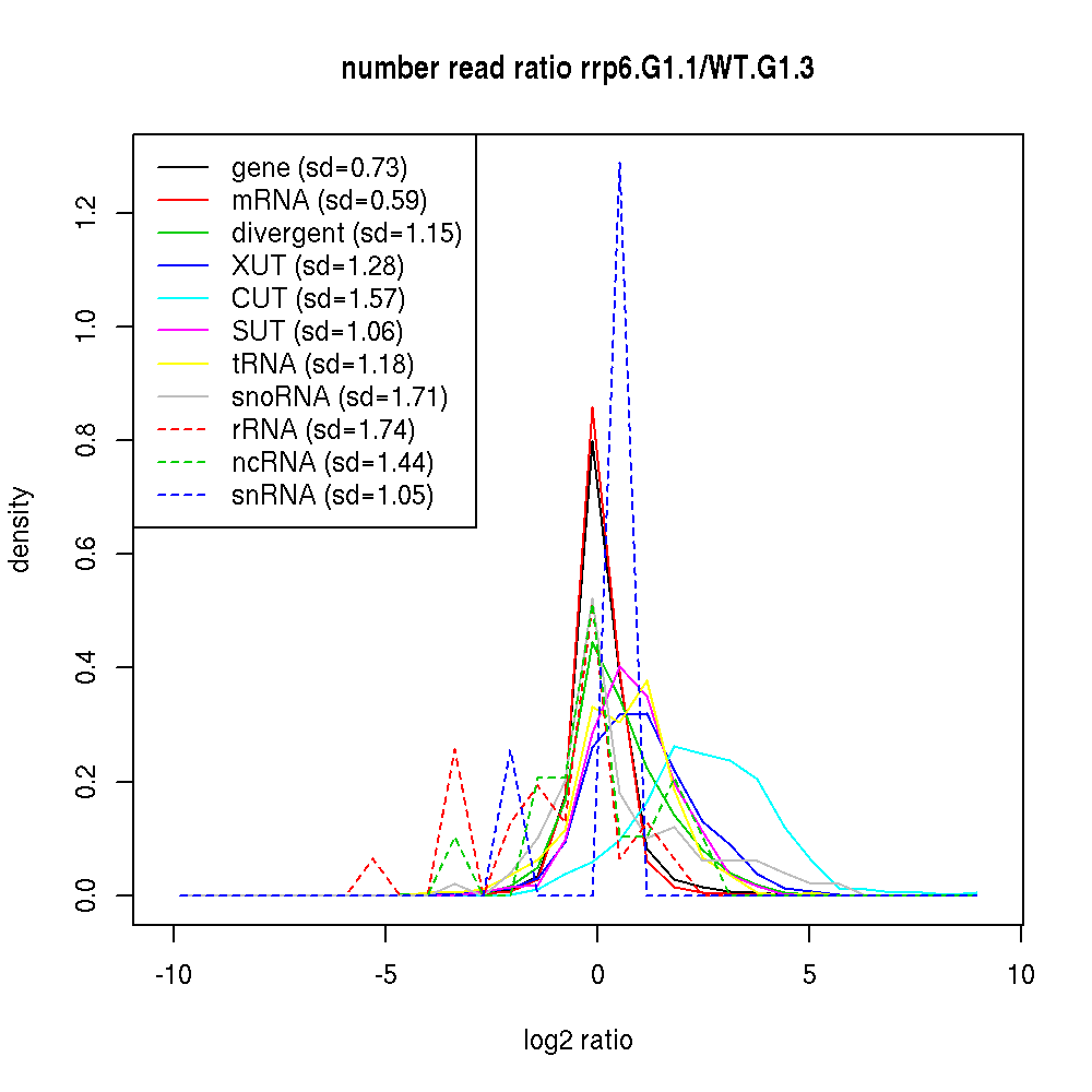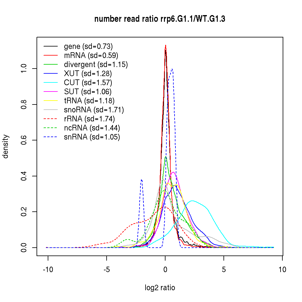 Density plot read ratio by type -