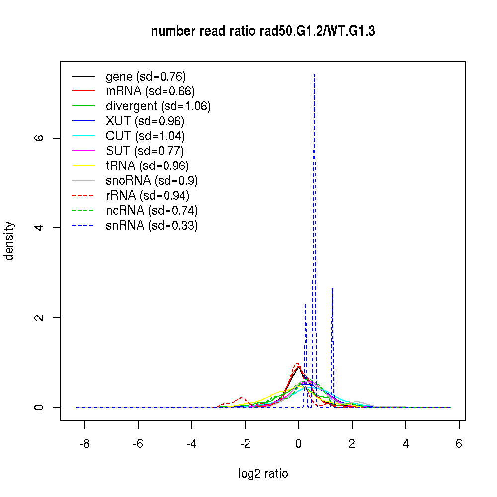 Density plot read ratio by type -