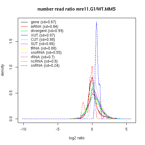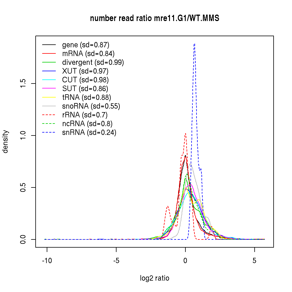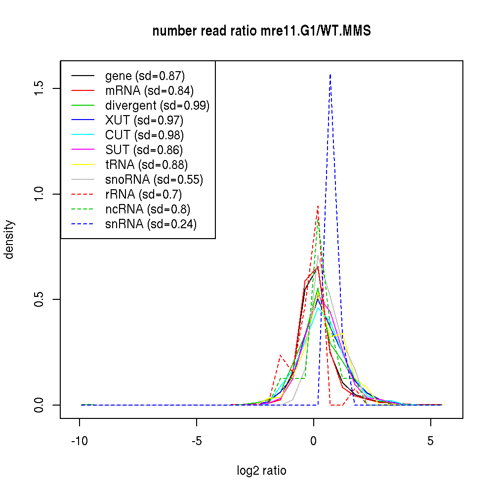 Density plot read ratio by type -
