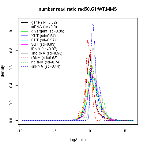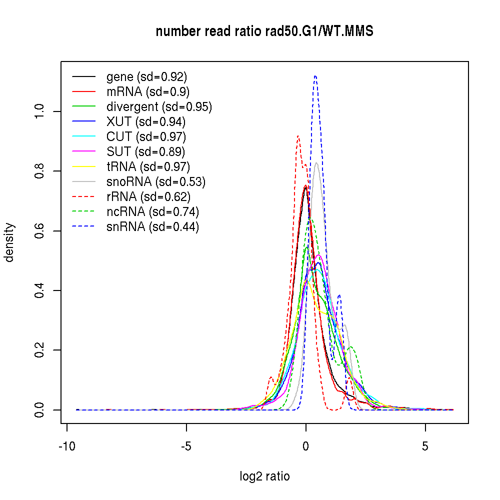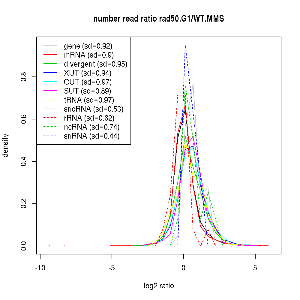 Density plot read ratio by type -