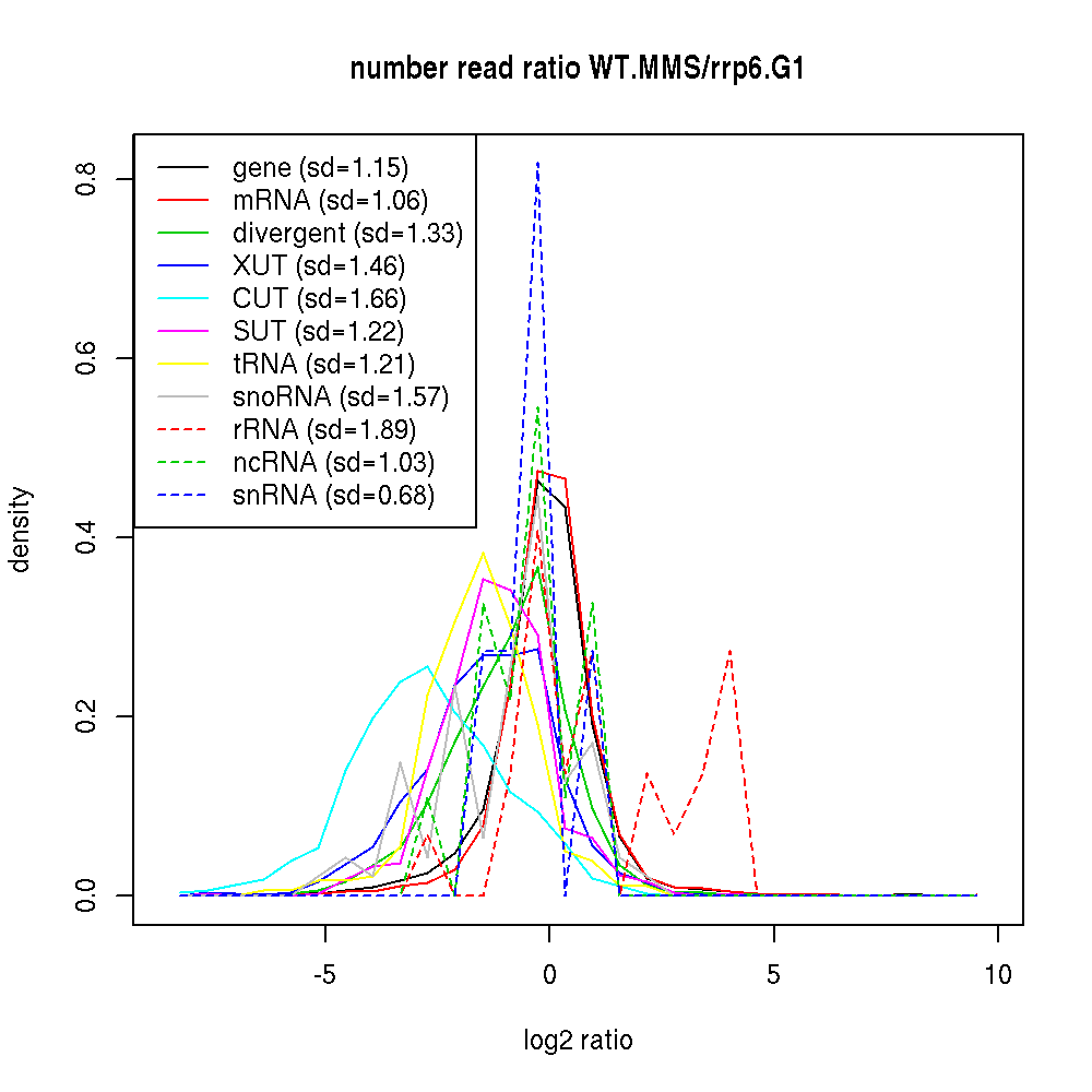 Density plot read ratio by type -