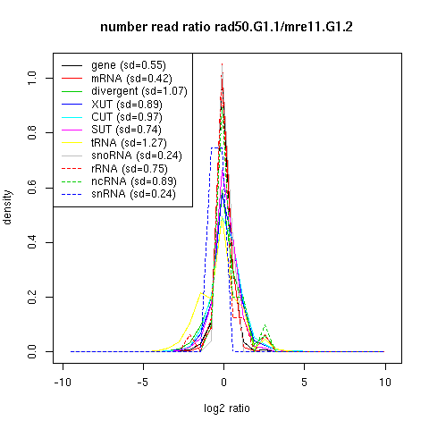 Density plot read ratio by type -