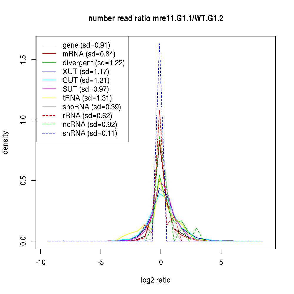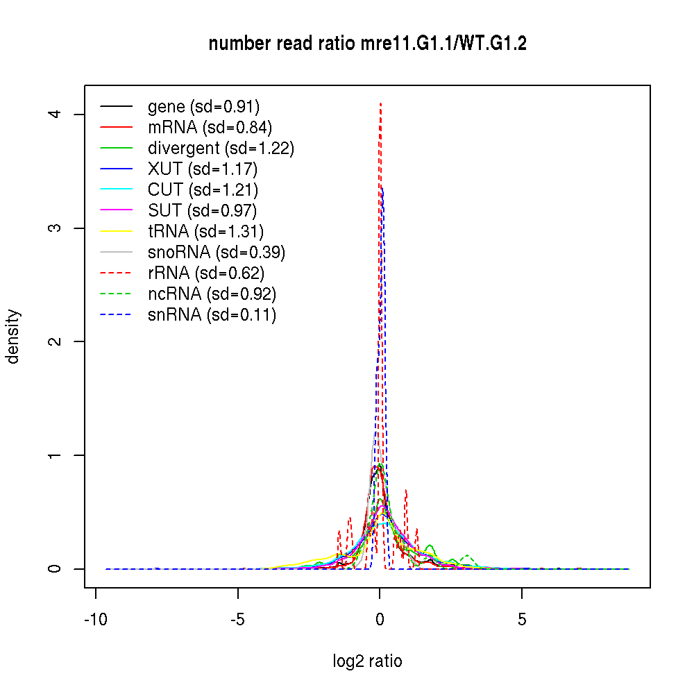 Density plot read ratio by type -