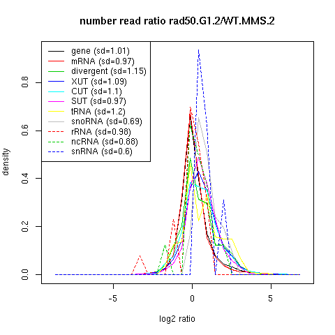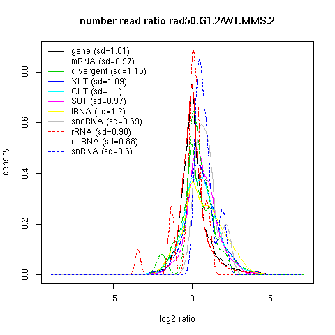 Density plot read ratio by type -