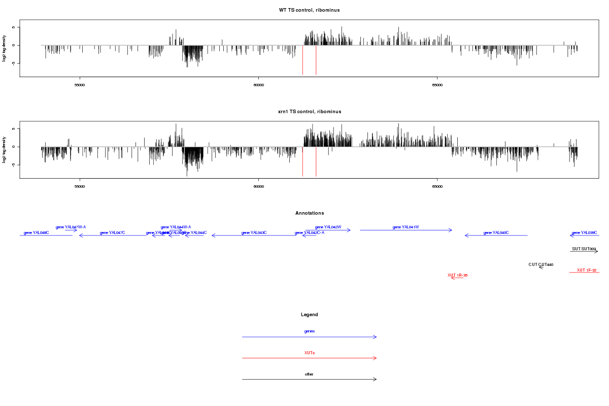 Sequence read density, YAL042C-A, (1:53920..68919)