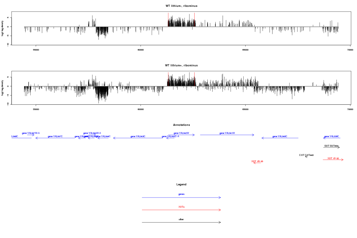 Sequence read density, YAL042W, ERV46, (1:54440..69439)