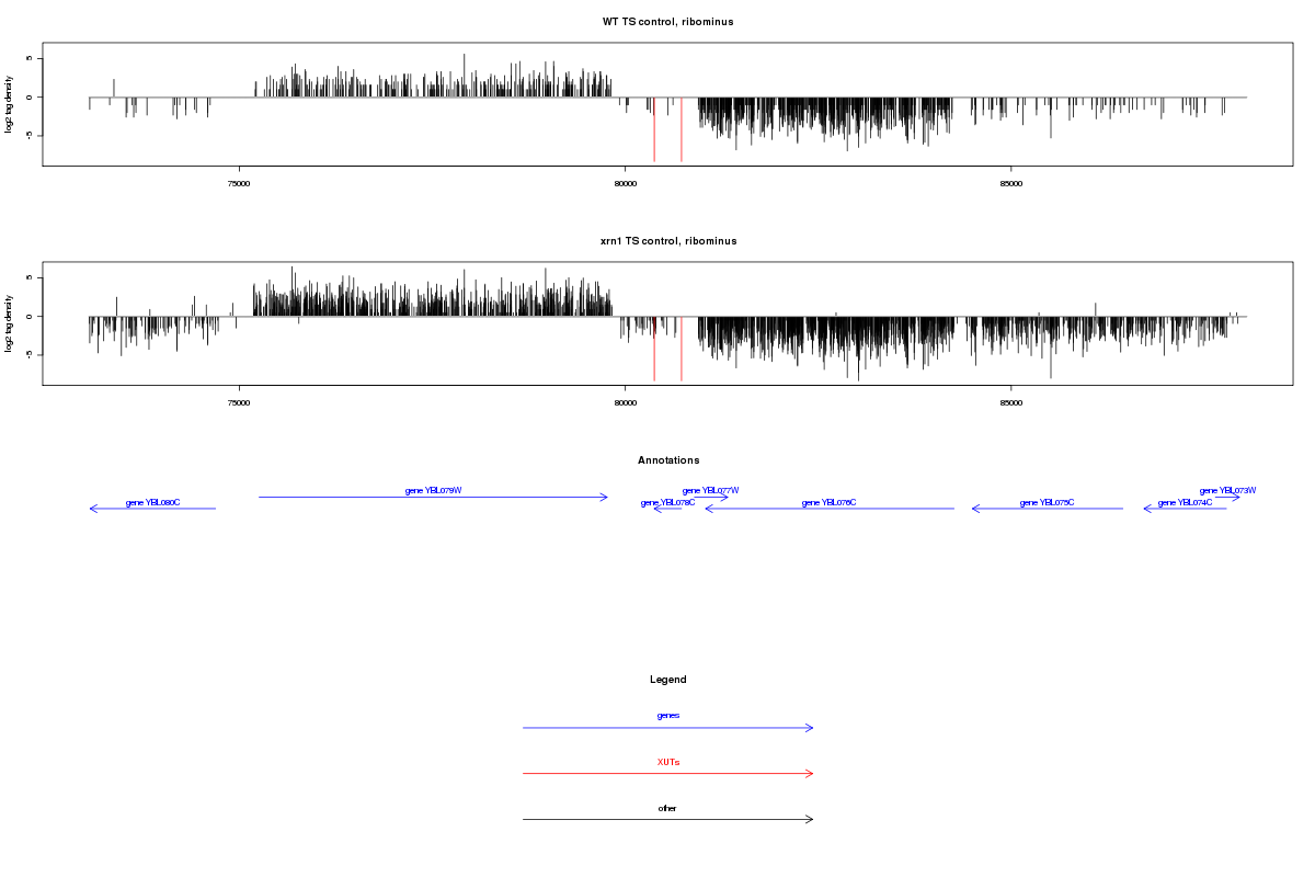 Sequence read density, YBL078C, ATG8, (2:73052..88051)