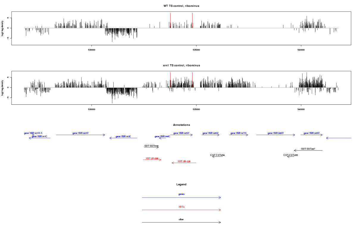 Sequence read density, YBR145W, ADH5, (2:526784..541783)