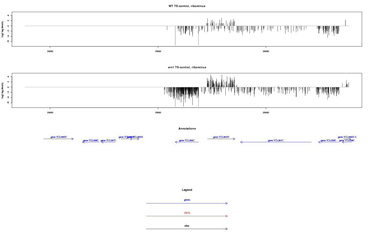 Sequence read density, YCL064C, CHA1, (3:8839..23838)