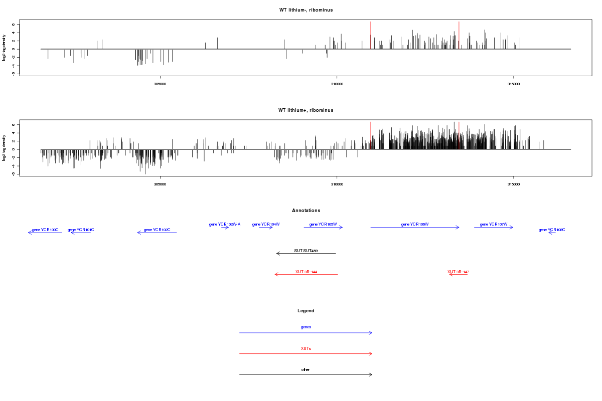 Sequence read density, YCR106W, RDS1, (3:301618..316617)