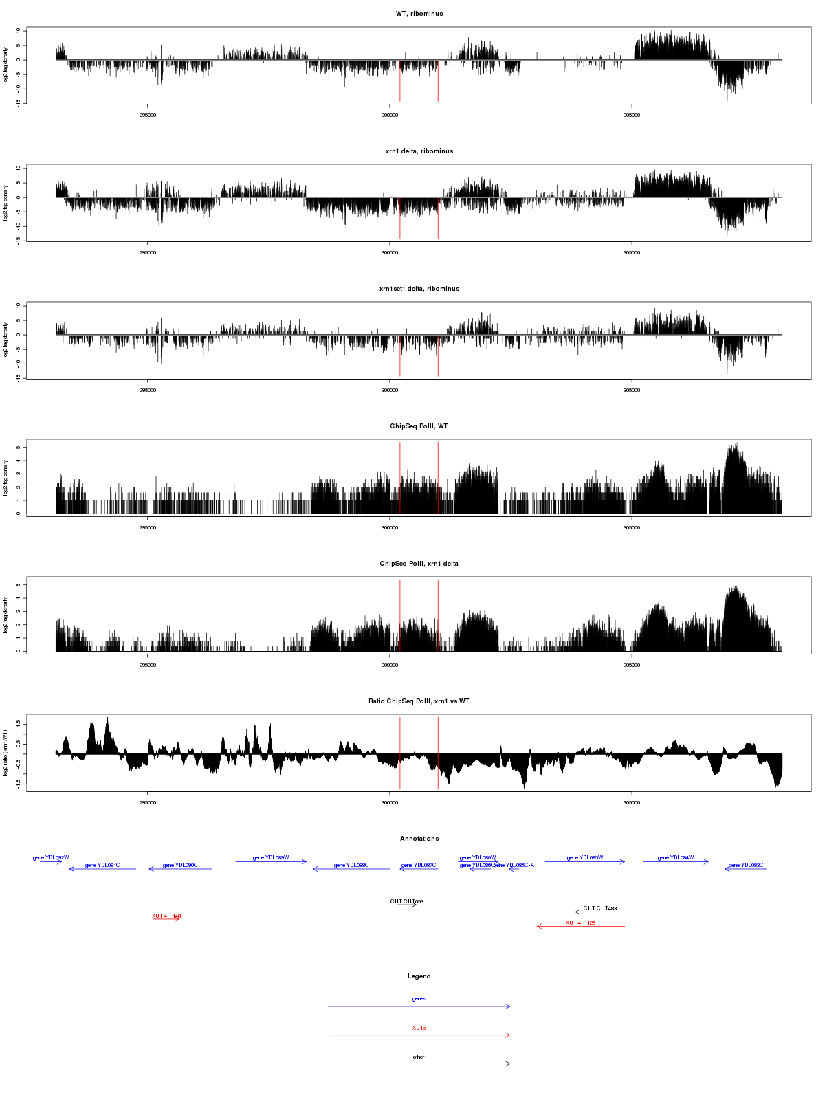 Sequence read density, YDL087C, LUC7, (4:293106..308105)