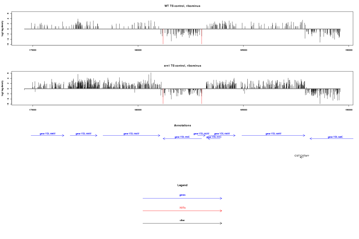 Sequence read density, YDL153C, SAS10, (4:174603..189602)
