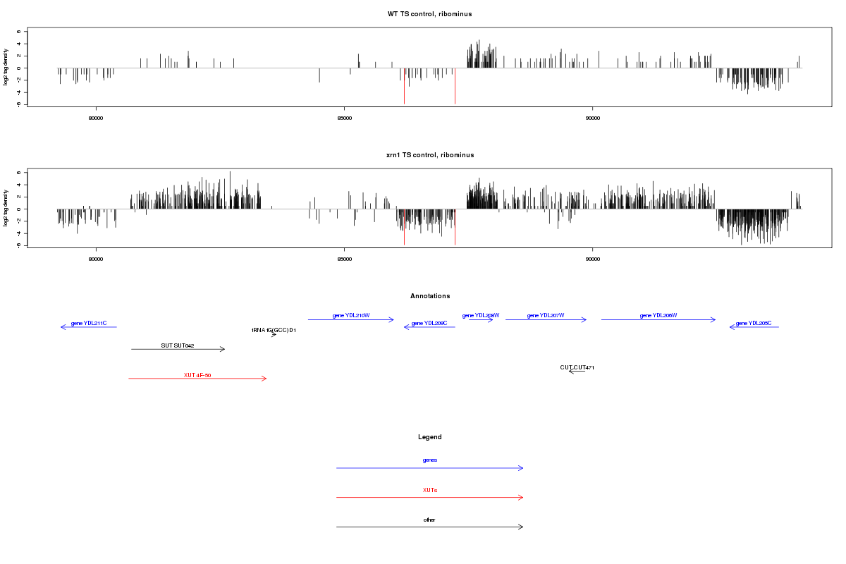 Sequence read density, YDL209C, CWC2, (4:79218..94217)