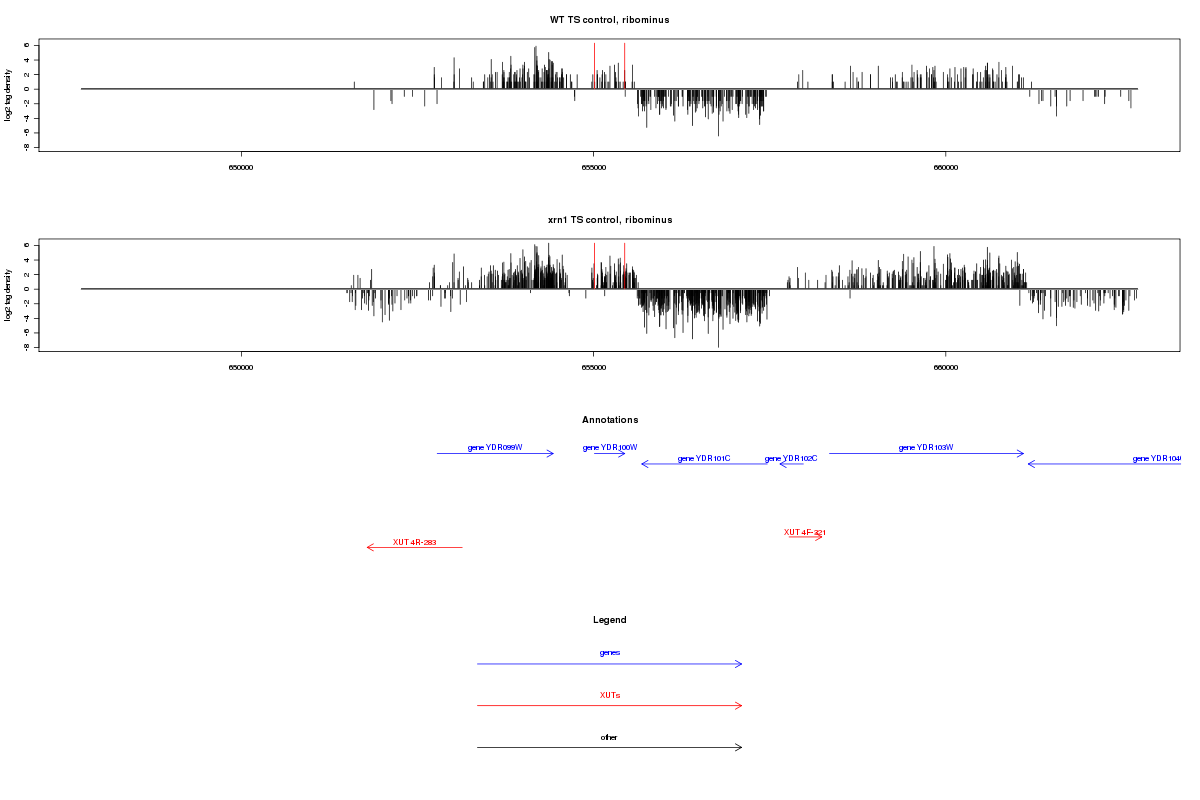 Sequence read density, YDR100W, TVP15, (4:647726..662725)