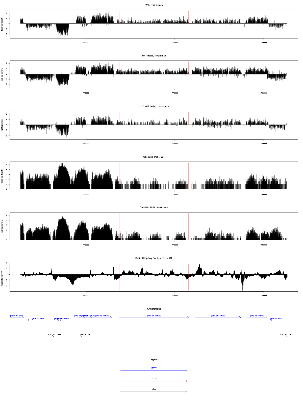 Sequence read density, YDR159W, SAC3, (4:766328..781327)