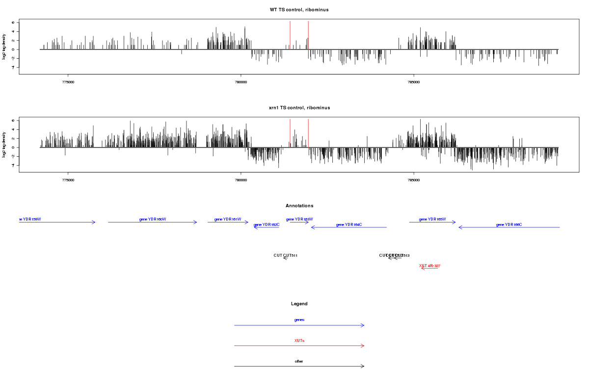 Sequence read density, YDR163W, CWC15, (4:774184..789183)