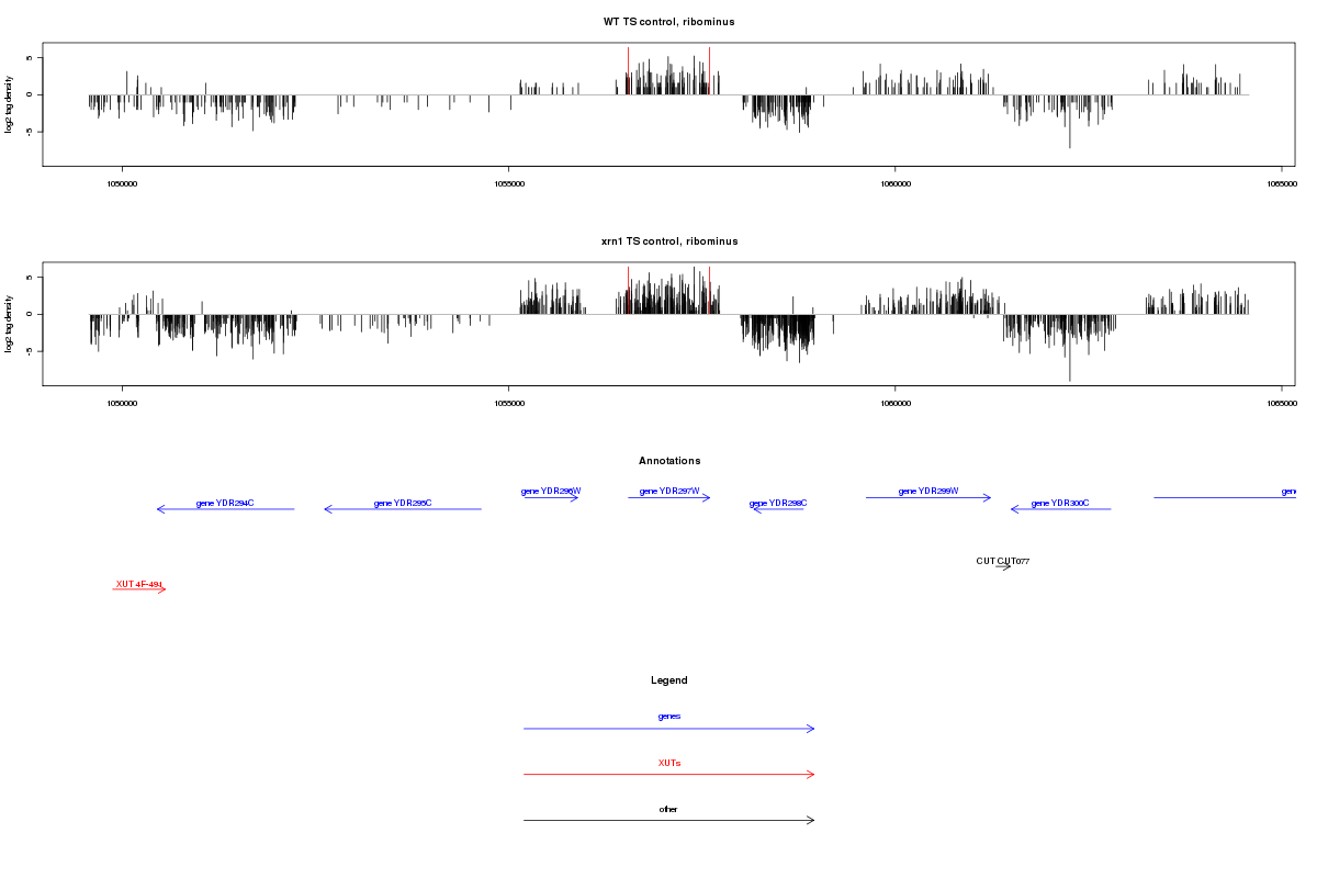 Sequence read density, YDR297W, SUR2, (4:1049572..1064571)