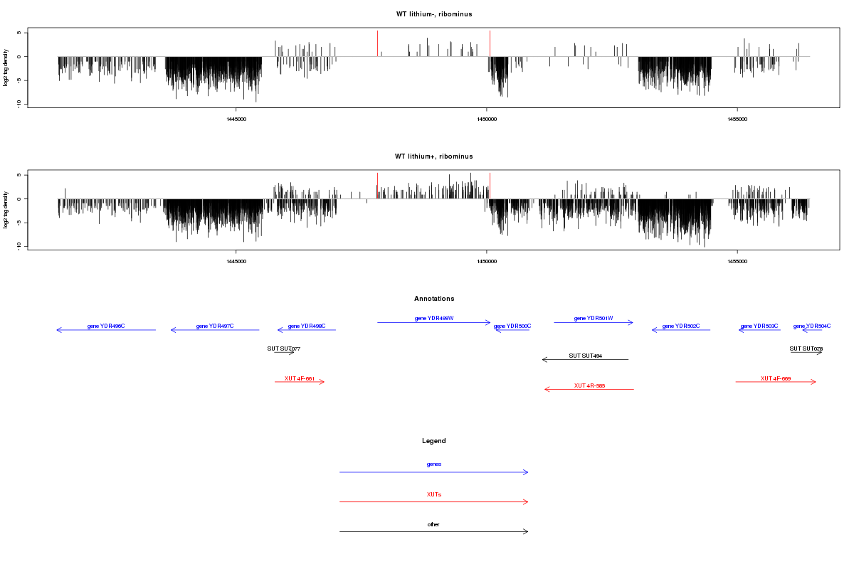 Sequence read density, YDR499W, LCD1, (4:1441444..1456443)