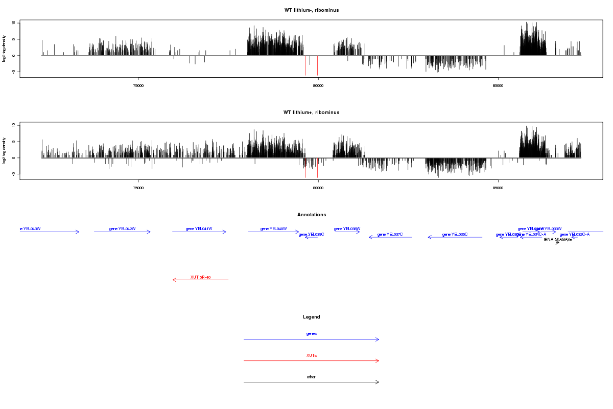 Sequence read density, YEL039C, CYC7, (5:72306..87305)