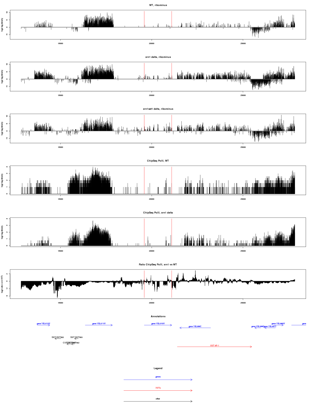 Sequence read density, YEL070W, DSF1, (5:12843..27842)