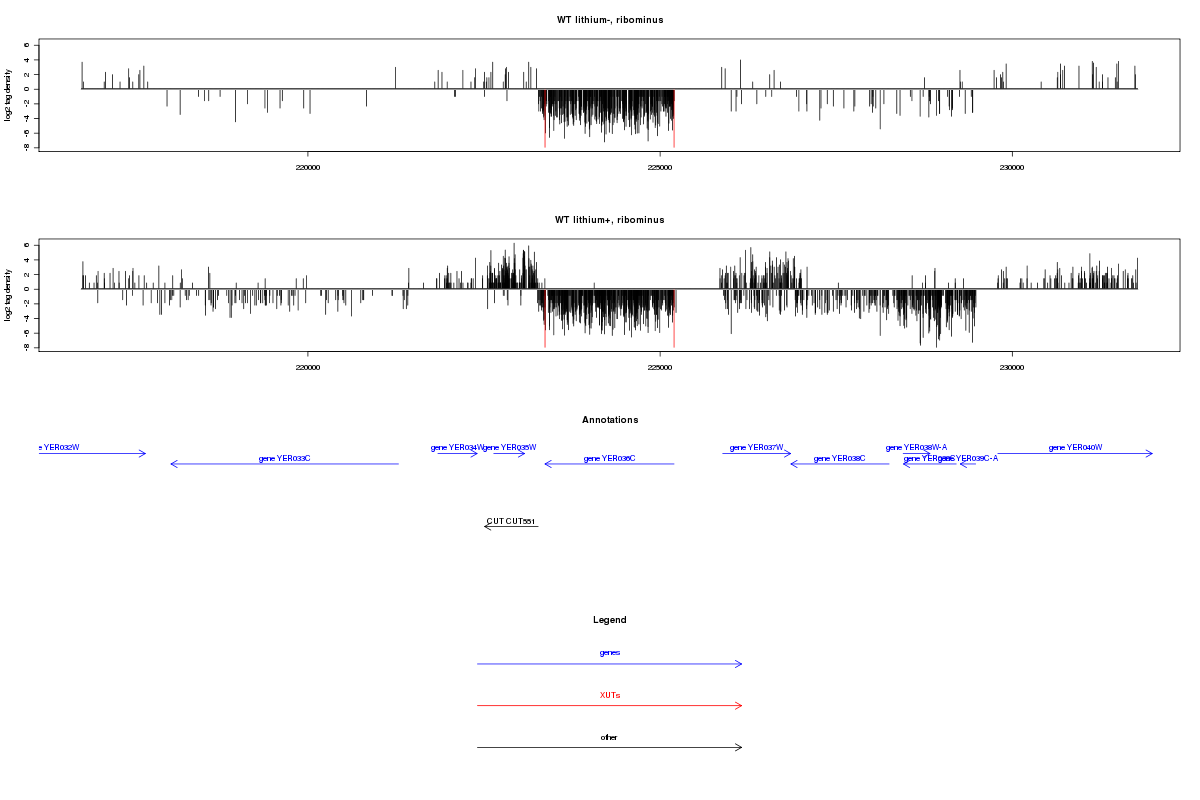 Sequence read density, YER036C, ARB1, (5:216782..231781)