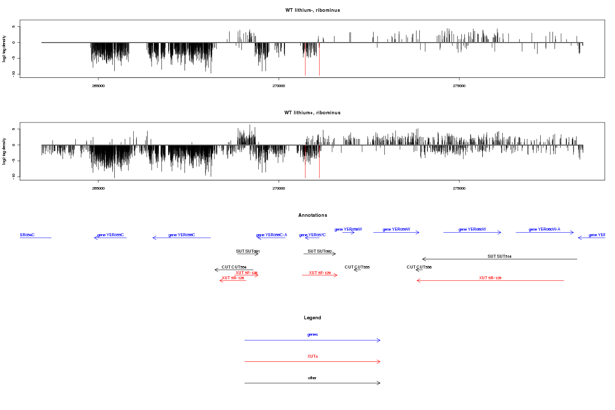 Sequence read density, YER057C, HMF1, (5:263430..278429)