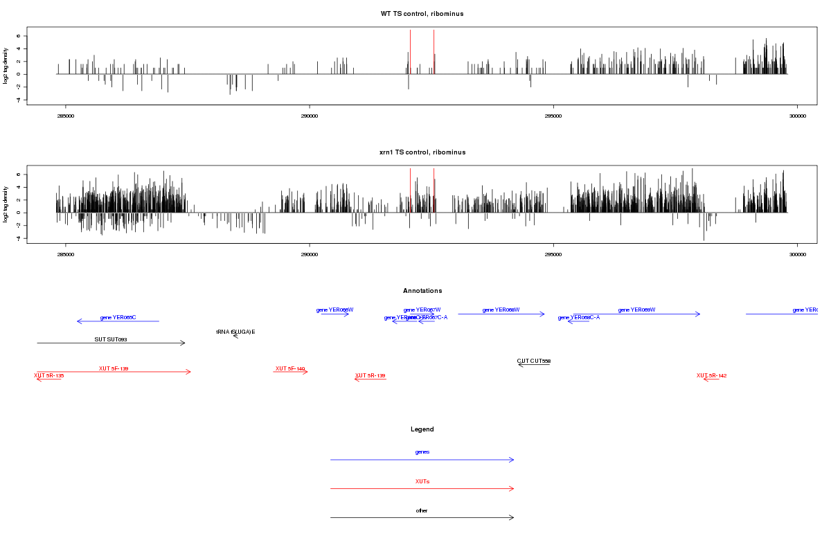 Sequence read density, YER067W, RGI1, (5:284806..299805)