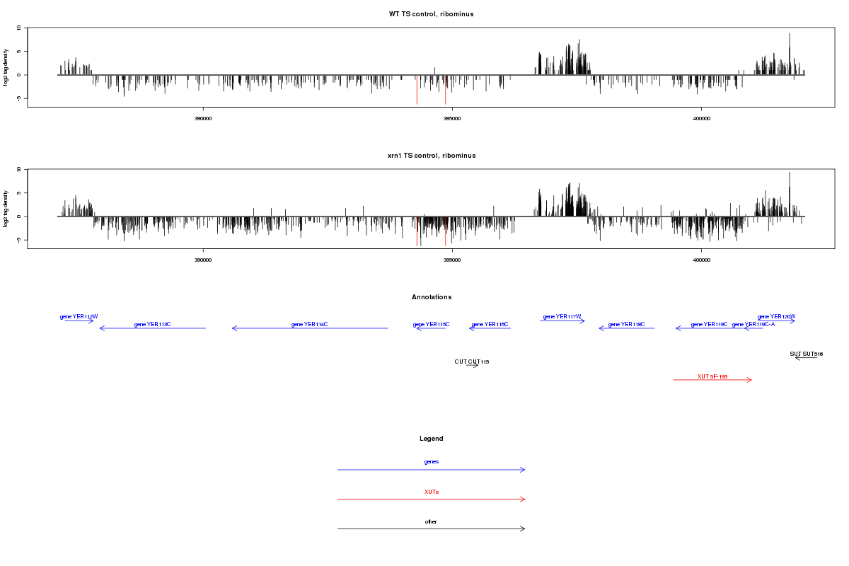 Sequence read density, YER115C, SPR6, (5:387076..402075)