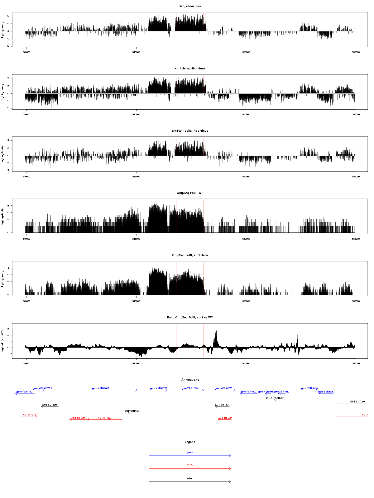 Sequence read density, YER178W, PDA1, (5:539943..554942)