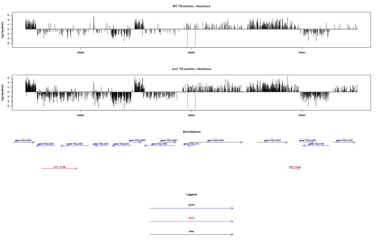 Sequence read density, YGL217C, (7:77508..92507)