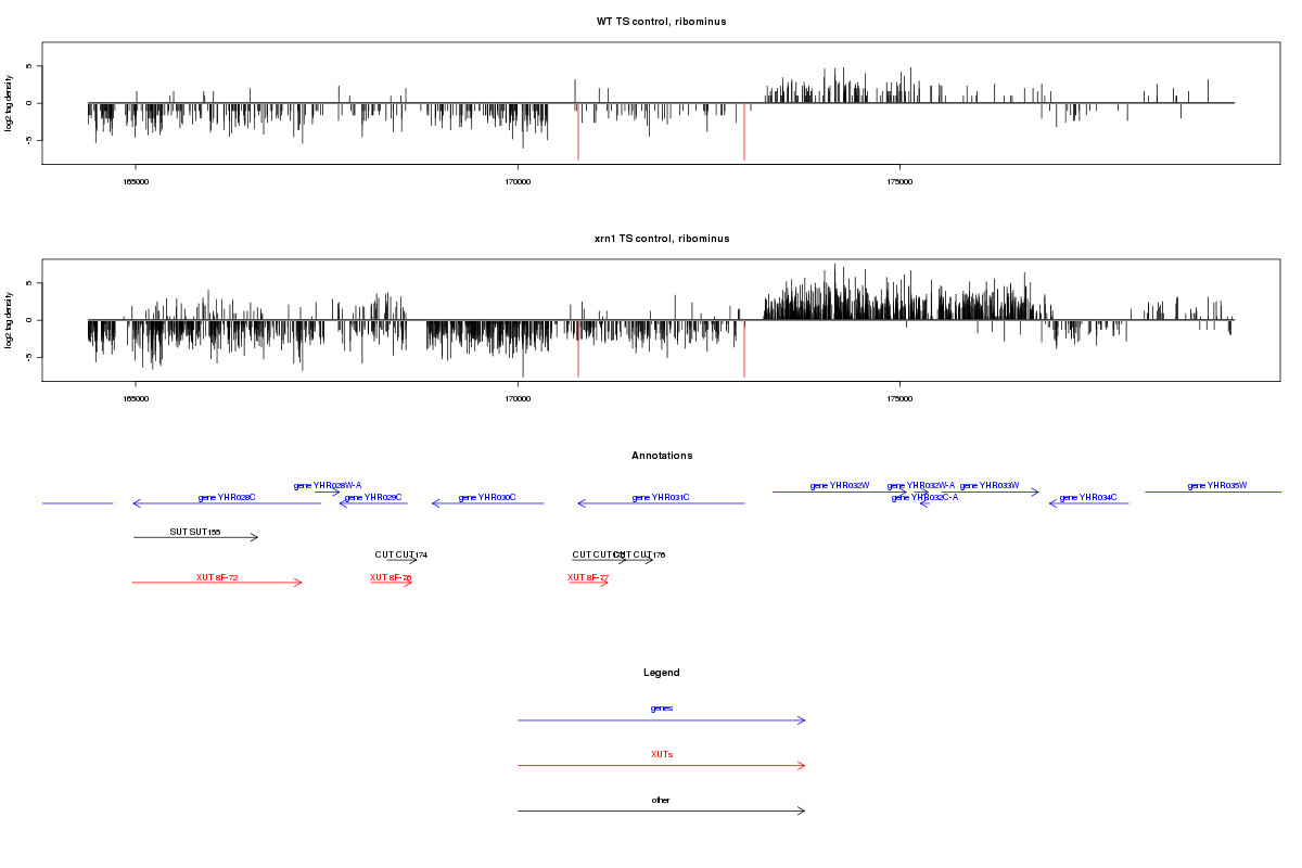 Sequence read density, YHR031C, RRM3, (8:164378..179377)
