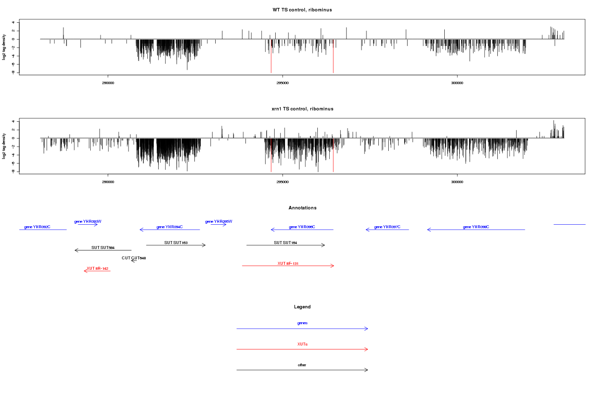 Sequence read density, YHR096C, HXT5, (8:288061..303060)