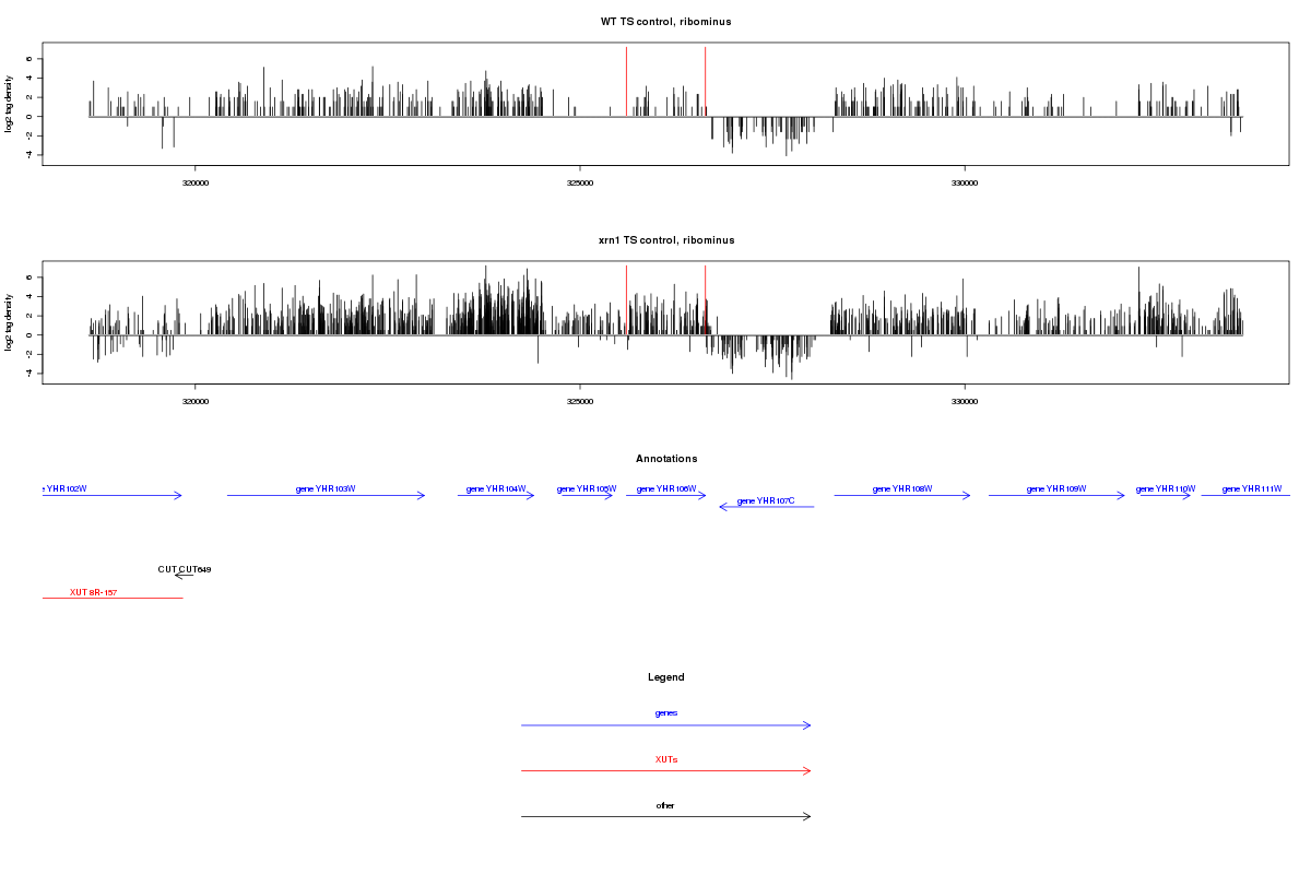 Sequence read density, YHR106W, TRR2, (8:318615..333614)