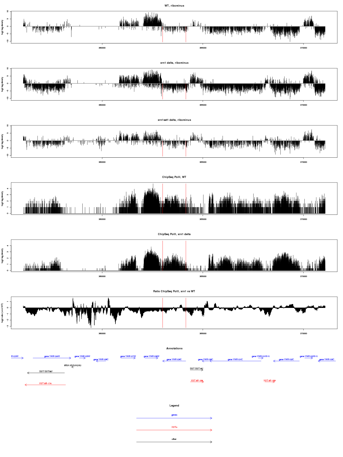 Sequence read density, YHR129C, ARP1, (8:356079..371078)