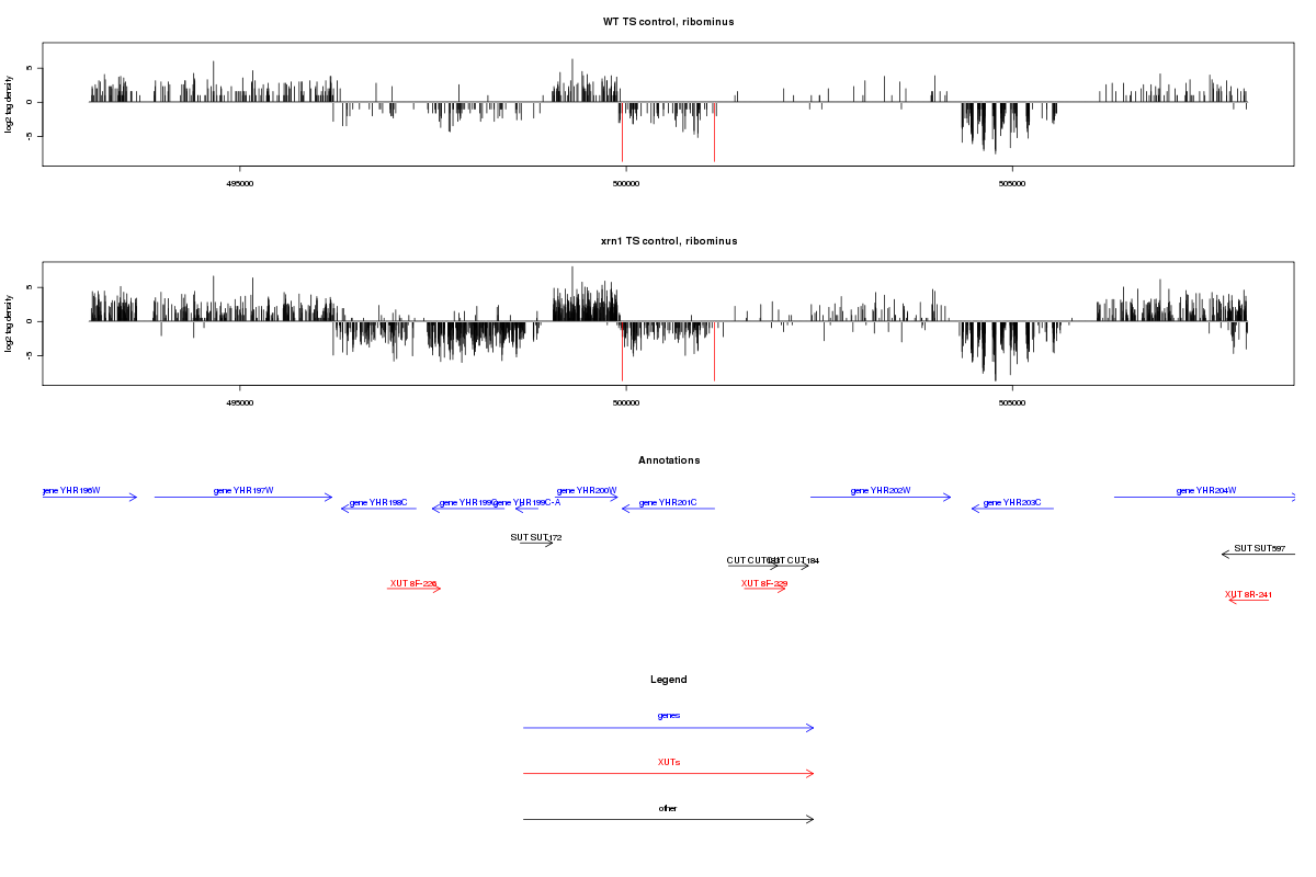 Sequence read density, YHR201C, PPX1, (8:493046..508045)