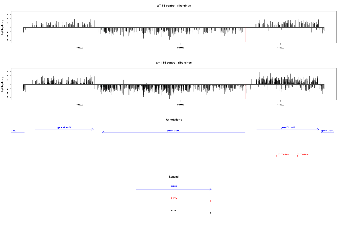 Sequence read density, YIL129C, TAO3, (9:102172..117171)
