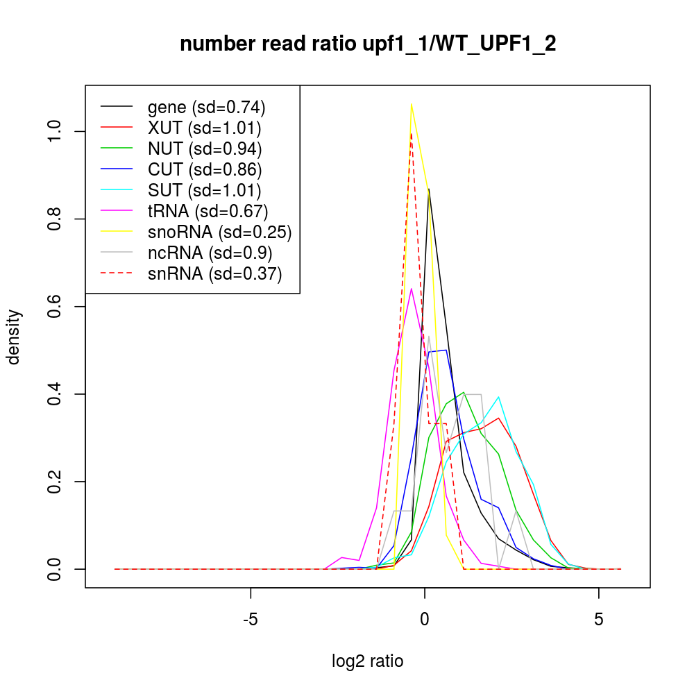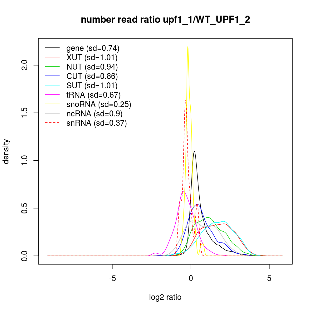Density plot read ratio by type -