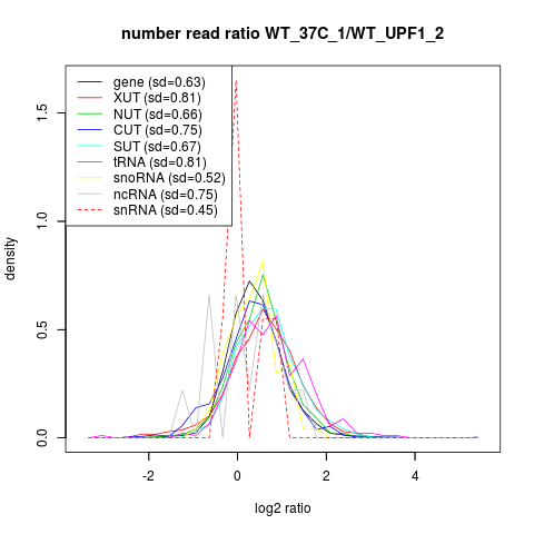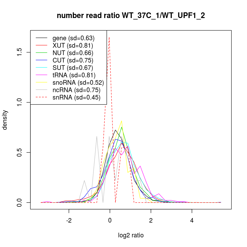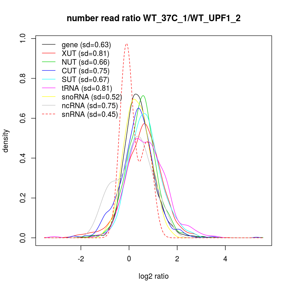 Density plot read ratio by type -