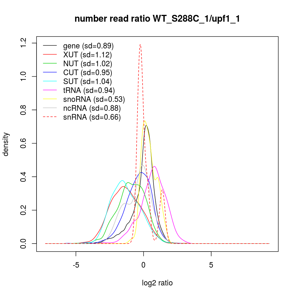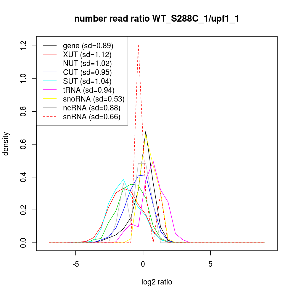 Density plot read ratio by type -