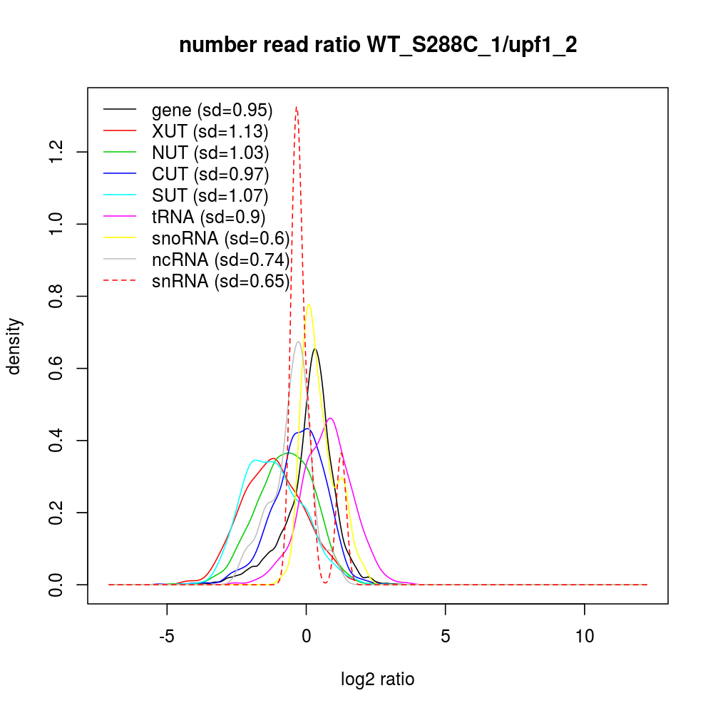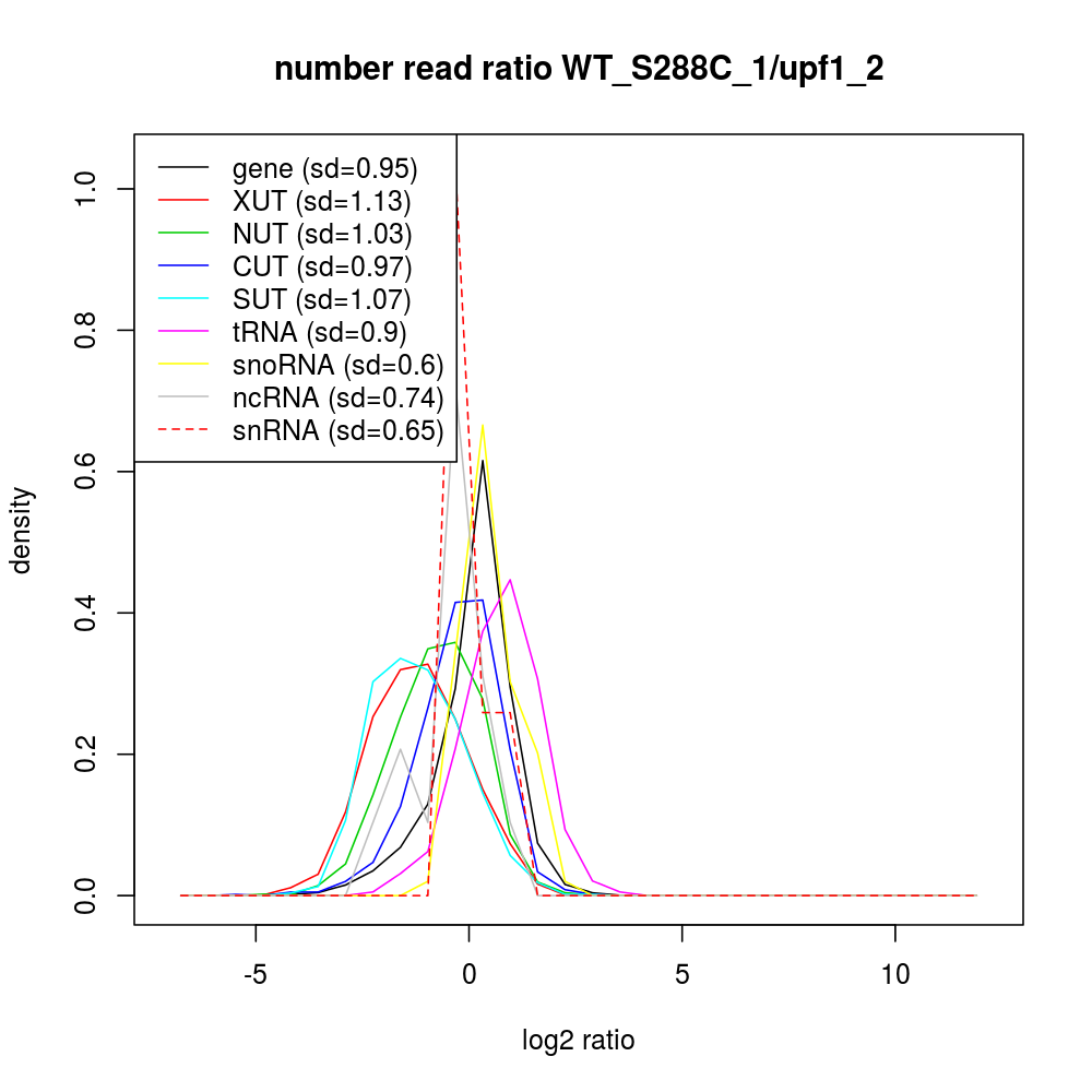Density plot read ratio by type -