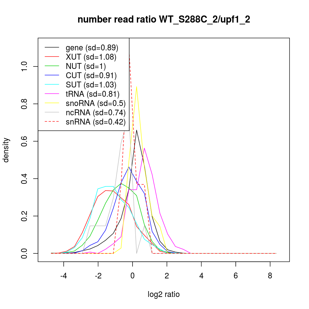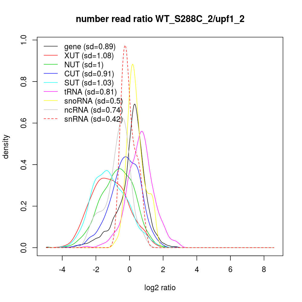 Density plot read ratio by type -
