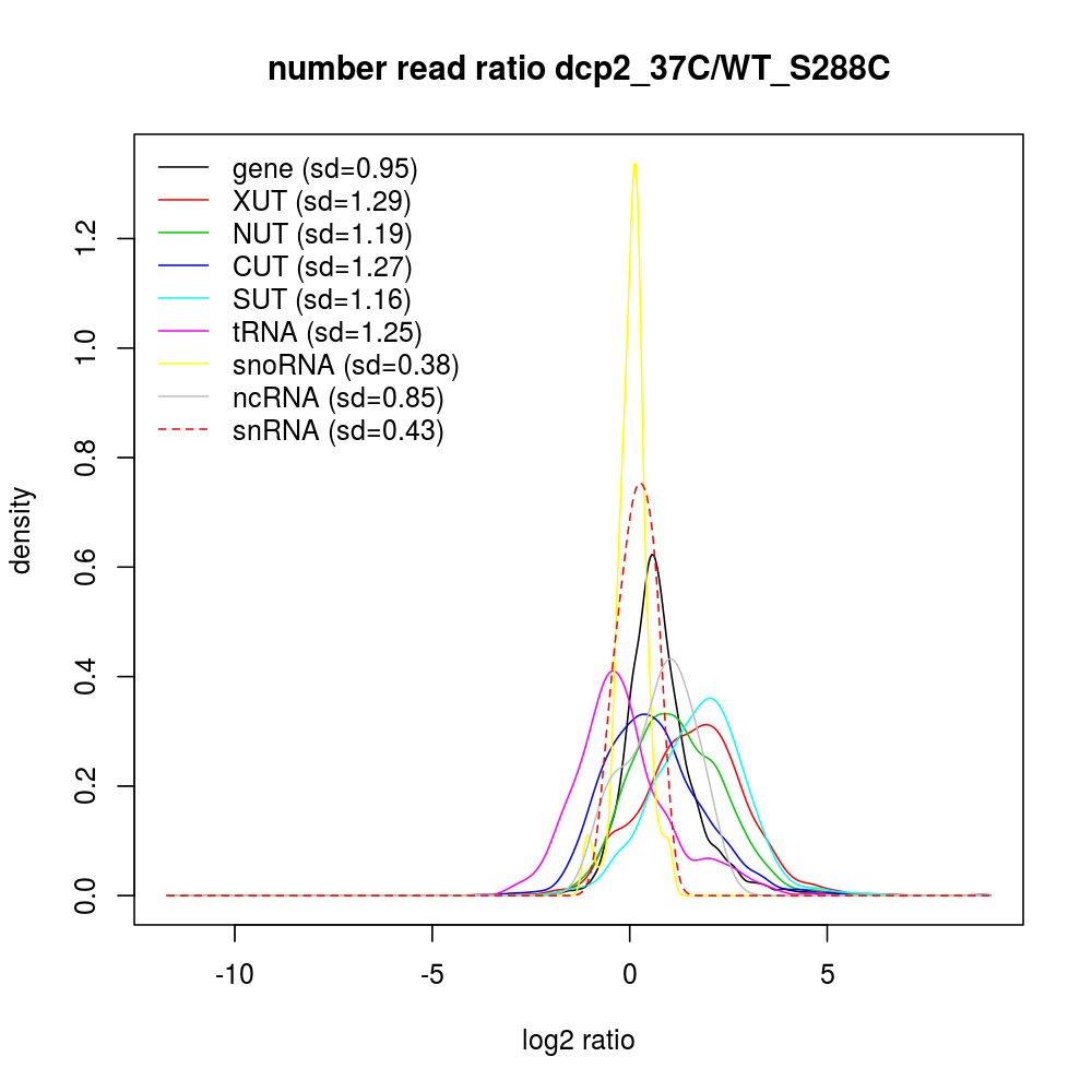 Density plot read ratio by type -