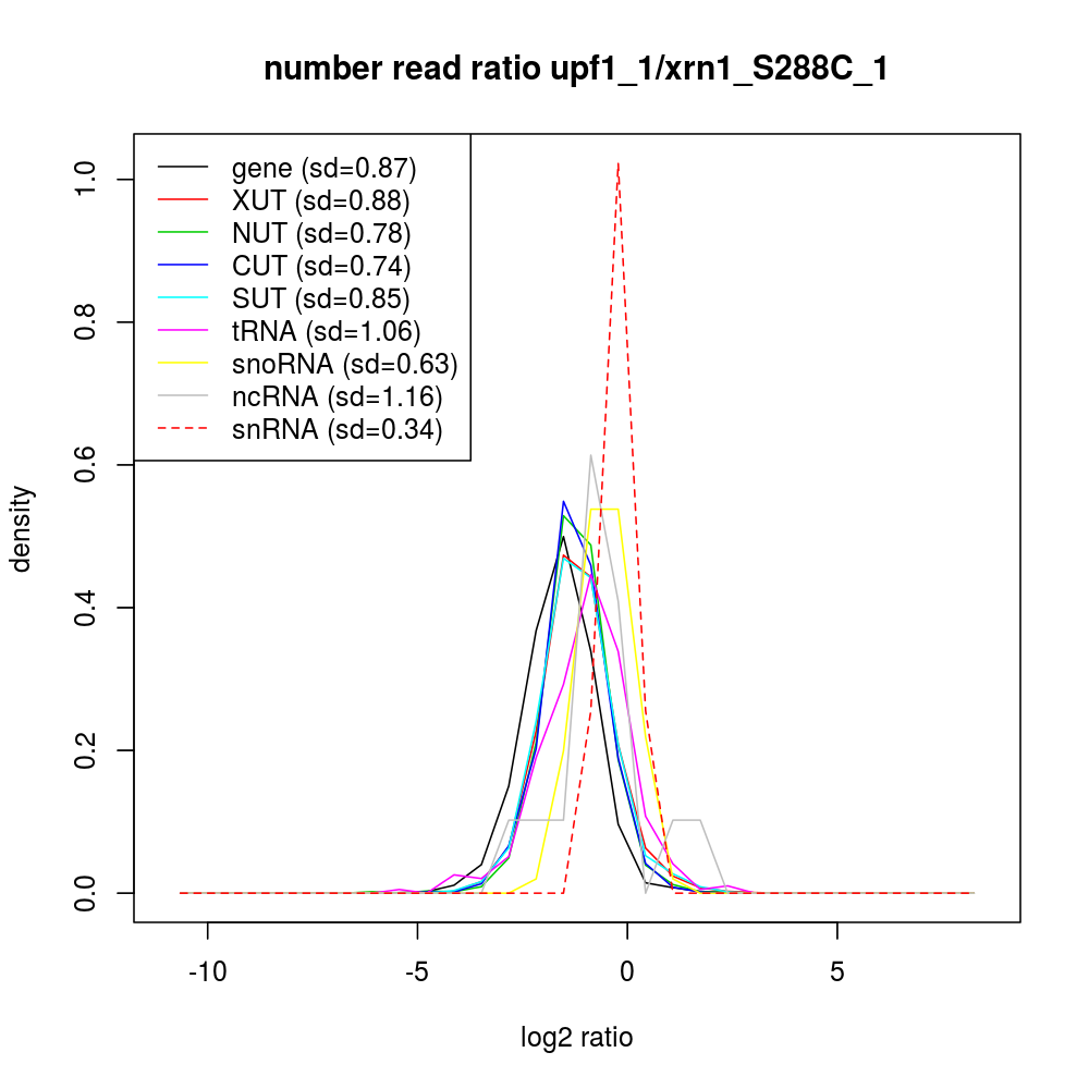 Density plot read ratio by type -