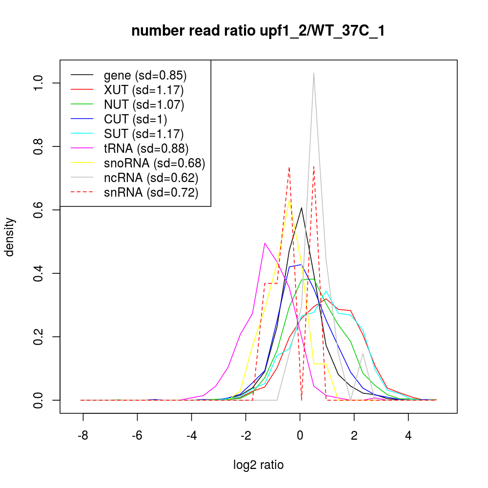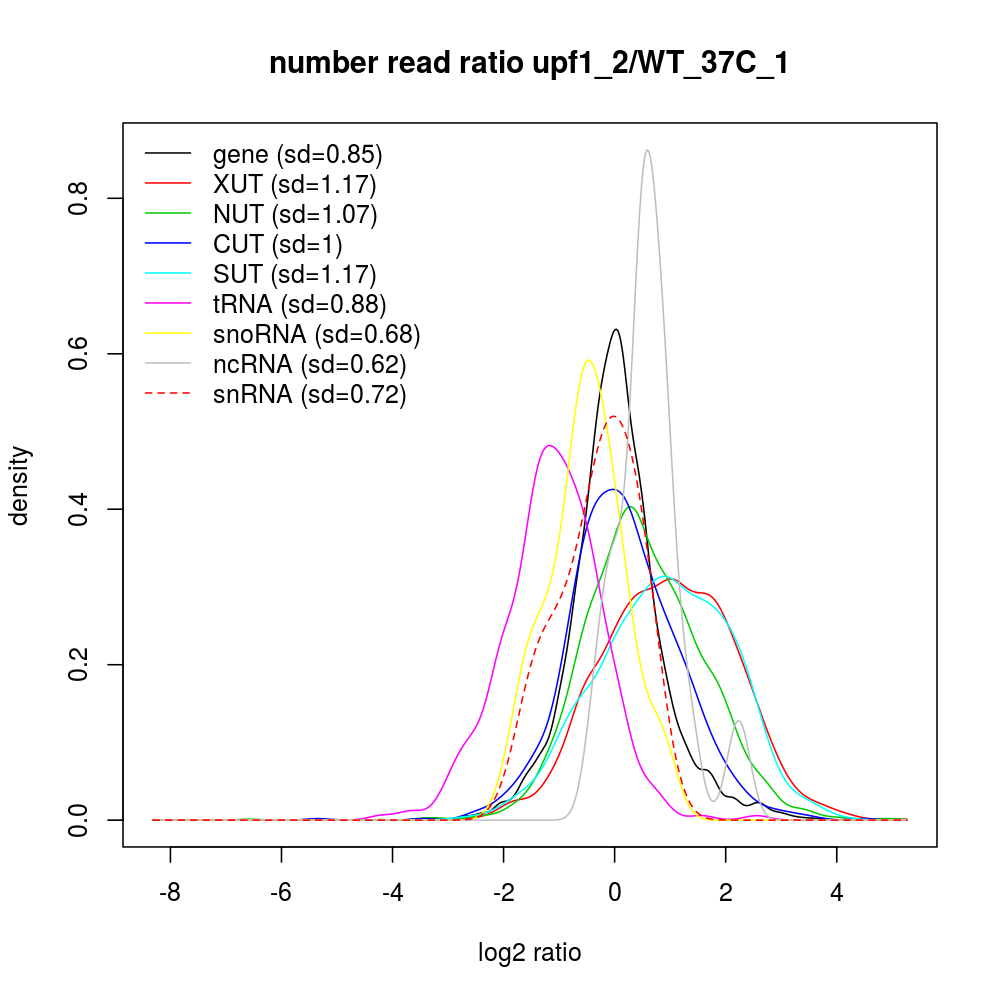 Density plot read ratio by type -