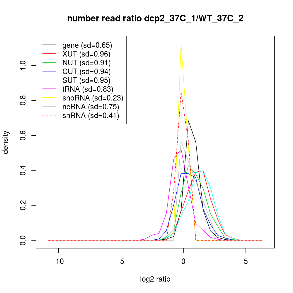 Density plot read ratio by type -