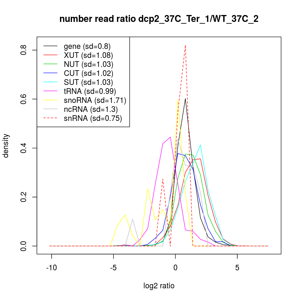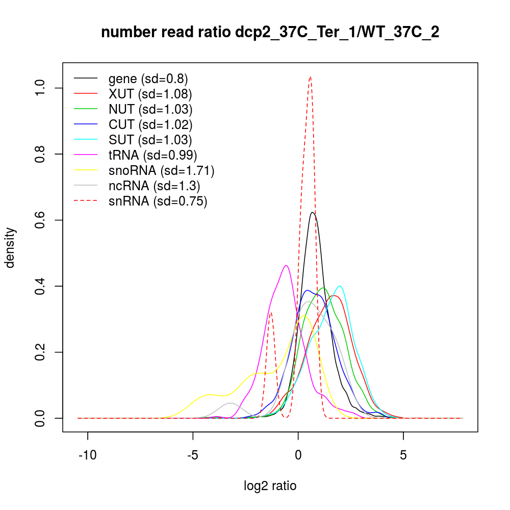 Density plot read ratio by type -