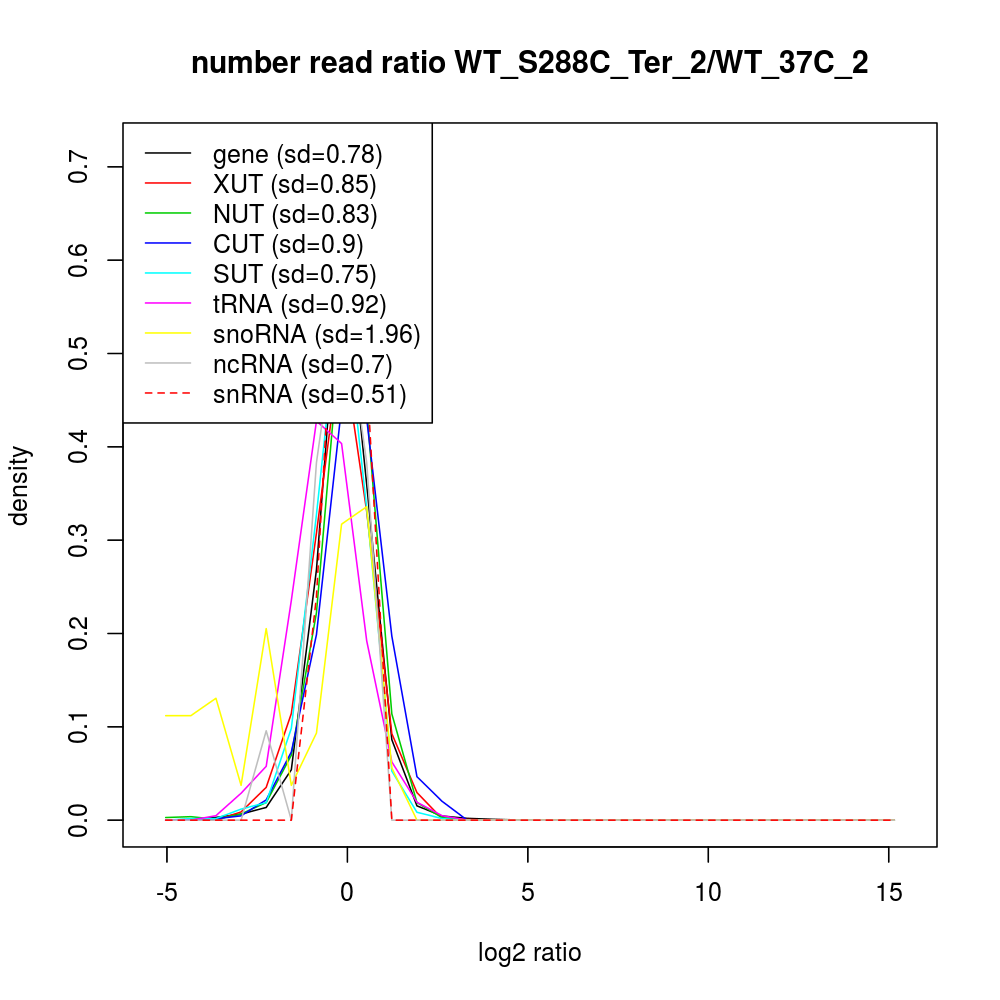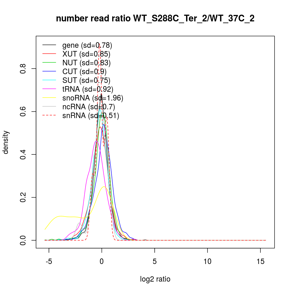 Density plot read ratio by type -