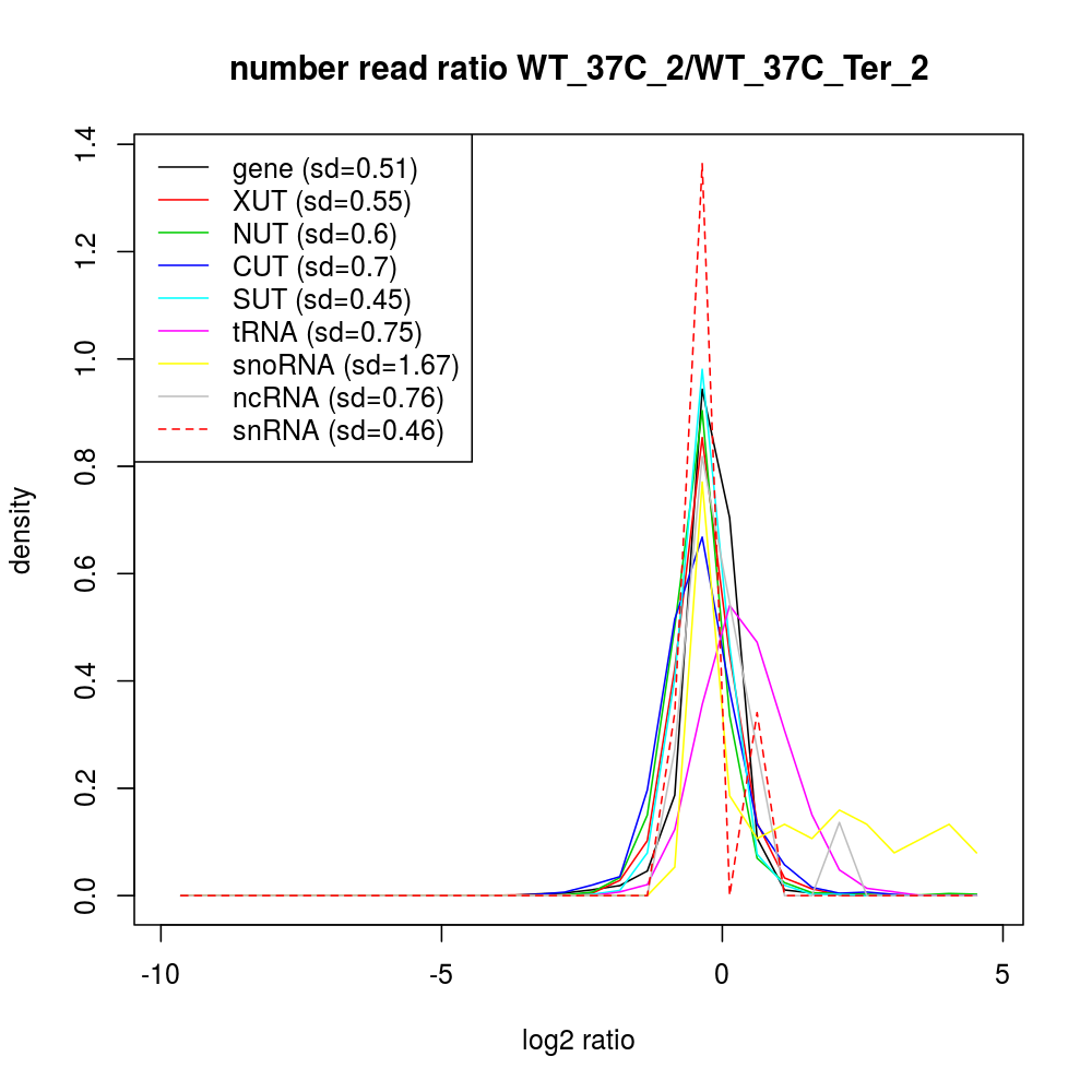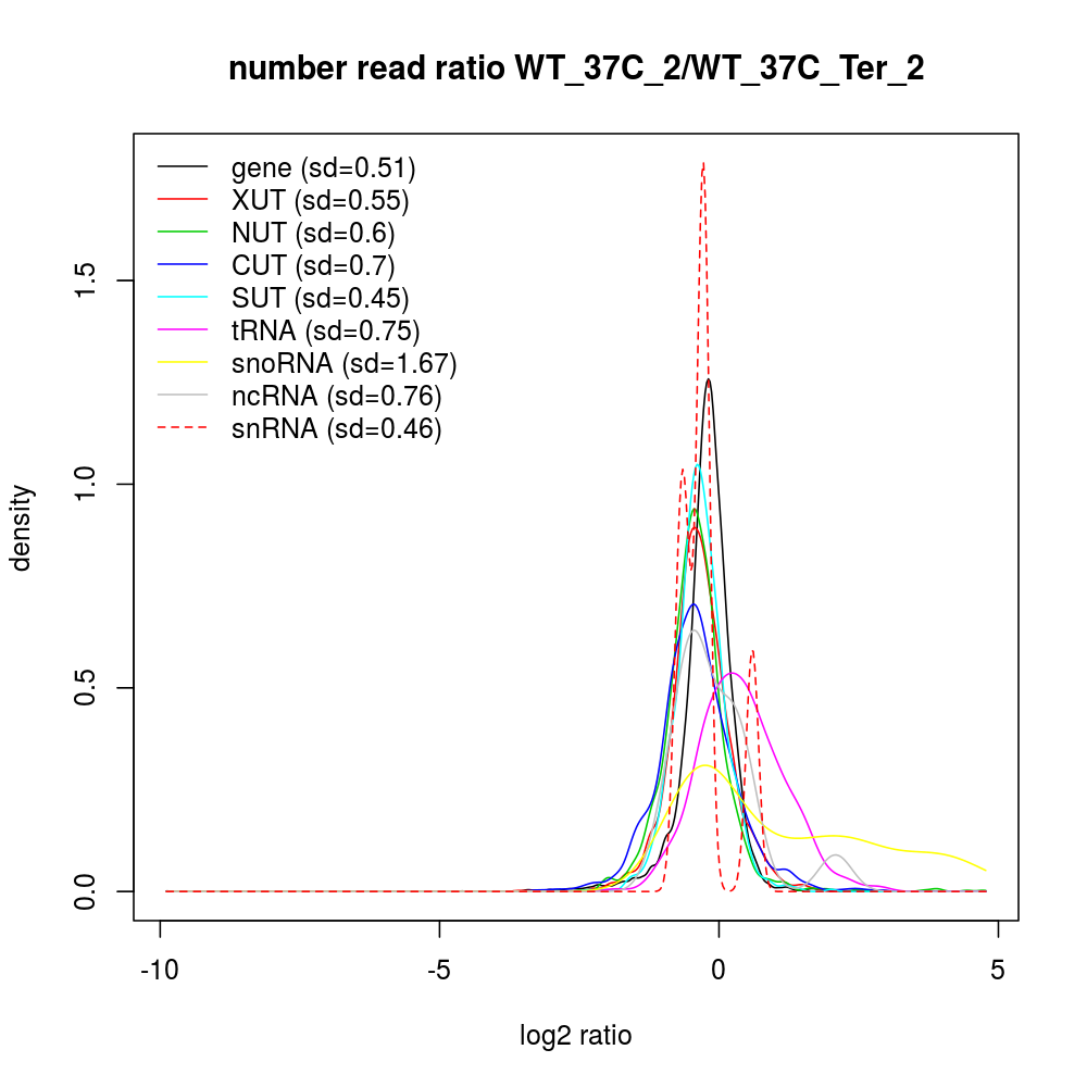 Density plot read ratio by type -