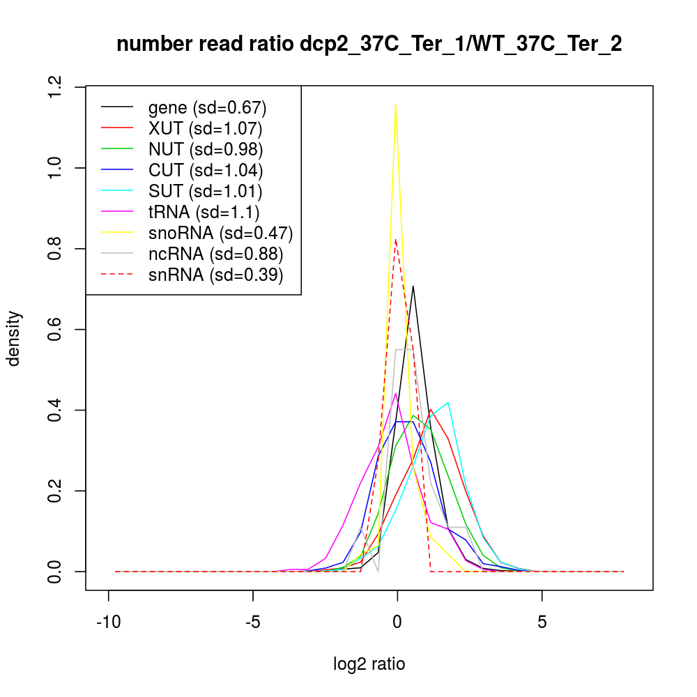 Density plot read ratio by type -
